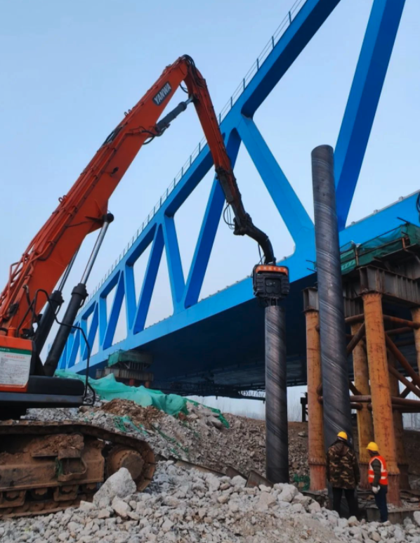 The construction site has complex soil conditions. Attempting to use a 120-ton electric hammer for 24-meter 820 pile was futile. The project manager urgently contacted Juxiang and brought in the Juxiang S700 Four-Eccentric to the rescue. Leveraging the S700′s shock efficiency about 5 times higher than common hammers on the market, it effortlessly handled the 24-meter 820 pile. The powerful tool showcased its prowess, and the project continued with vigor.